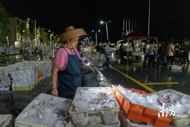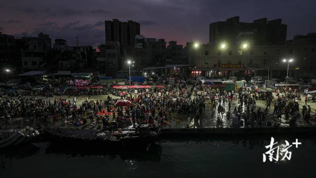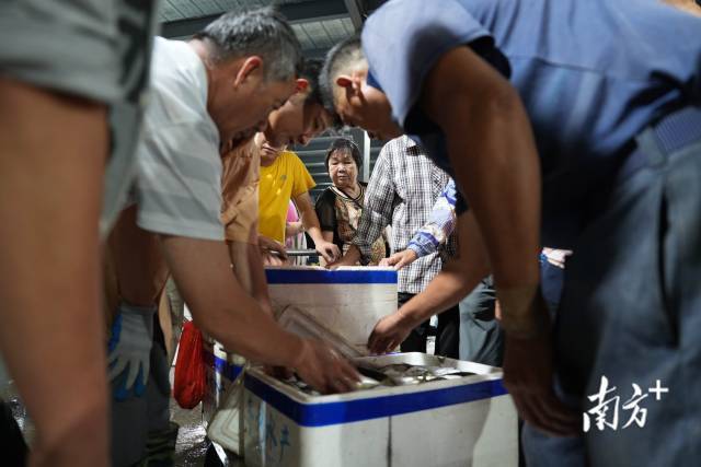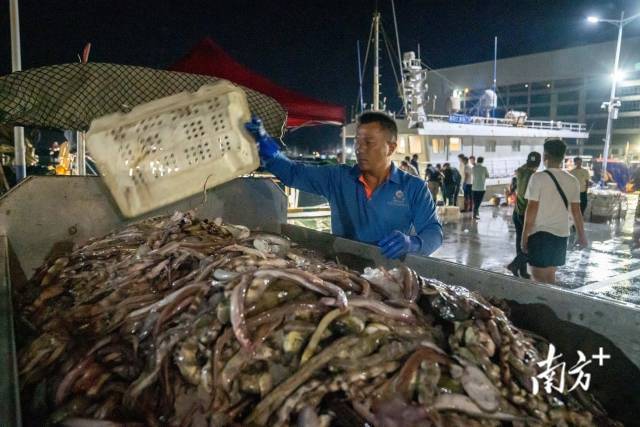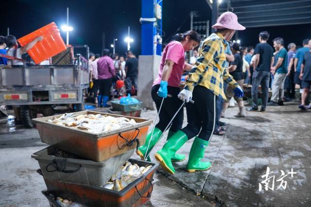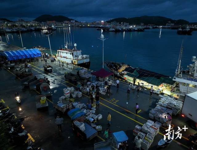 8月17日早上5时许,阳江市闸坡国家级中心渔港新高桩码头,有部分渔船已经返港,现场热闹非凡,许多商贩到此批量购买海鲜返回市场售卖。