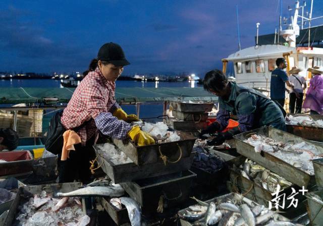 8月17日凌晨五点半,天刚蒙蒙亮,揭阳市惠来县神泉港的码头已经热闹起来了,码头上一派繁忙,前一天开渔令发布后,部分出海捕捞的船只陆续返港靠岸。